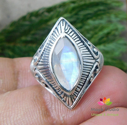 925 Sterling Silver Jewelry,Delicate Faceted Moonstone Ring,Party Wear Ring,Anniversary Gift,Silver gemstone Ring for Christmas