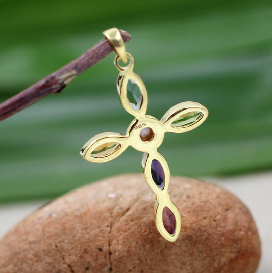 925 Sterling Silver Gold Plated Jewelry,Genuine Gemstones Pendant,Beautiful Holy Cross Pendant,Handmade Jewelry,Christmas Gift,Birthday Gift For Mom
