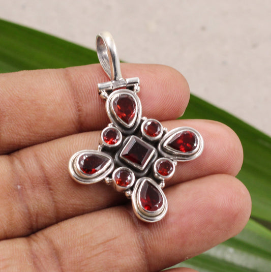 925 Sterling Silver Handmade Pendant, Garnet Gemstone Pendant,Anniversary Gift,Birthday Gift