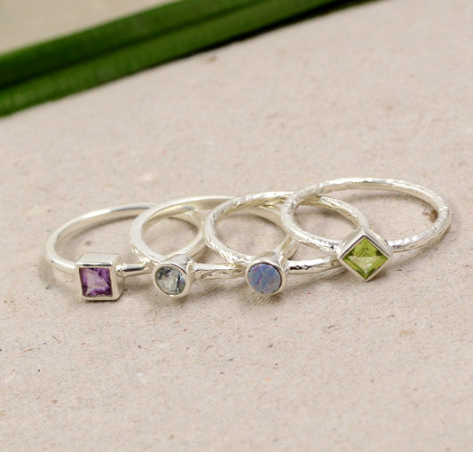 Blue Topaz,Peridot,Opal Stackable Rings,Set of Four rings,Minimalist 925 sterling silver jewelry,Anniversary Gift,Christmas Gift Ring