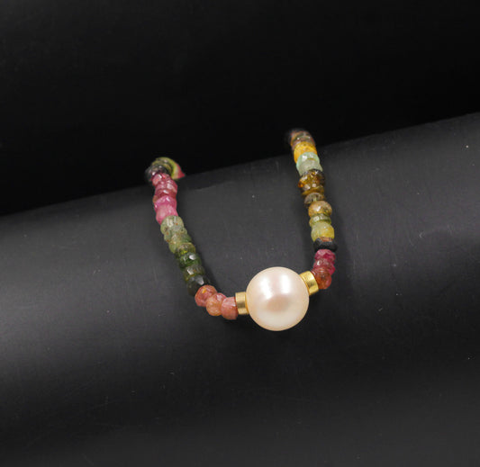 925 Sterling Silver Handmade Jewelry,Real Tourmaline Multi Color Beads & Pearl Necklace,Elegant Party Wear,Anniversary Necklace ,Valentine Gift