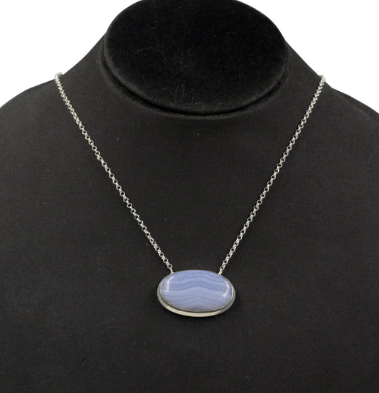 925 Silver Gemstone Jewelry,Lovely Blue Striped Lace Agate Necklace,Anniversary Gift,Chain Pendant Necklace,gift for Mom,Casual Wear Silver