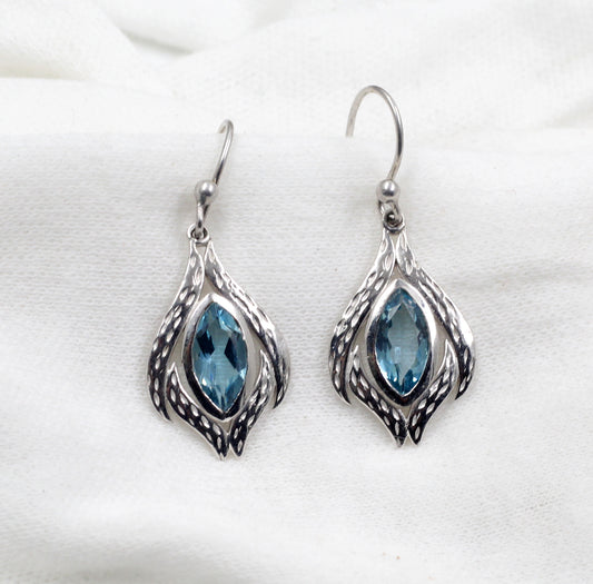 925 Sterling Silver Handmade Jewelry,Sparkling Swiss Blue Topaz Earring,Birthday Gift,Anniversary Gift,Mother's Day gift,Part Wear Danglers