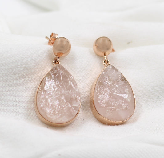 925 Sterling Silver Gemstone Jewelry,Rose Quartz Post Dangler Earring for Girl Friend,Daughter's Birthday gift,Anniversary Present