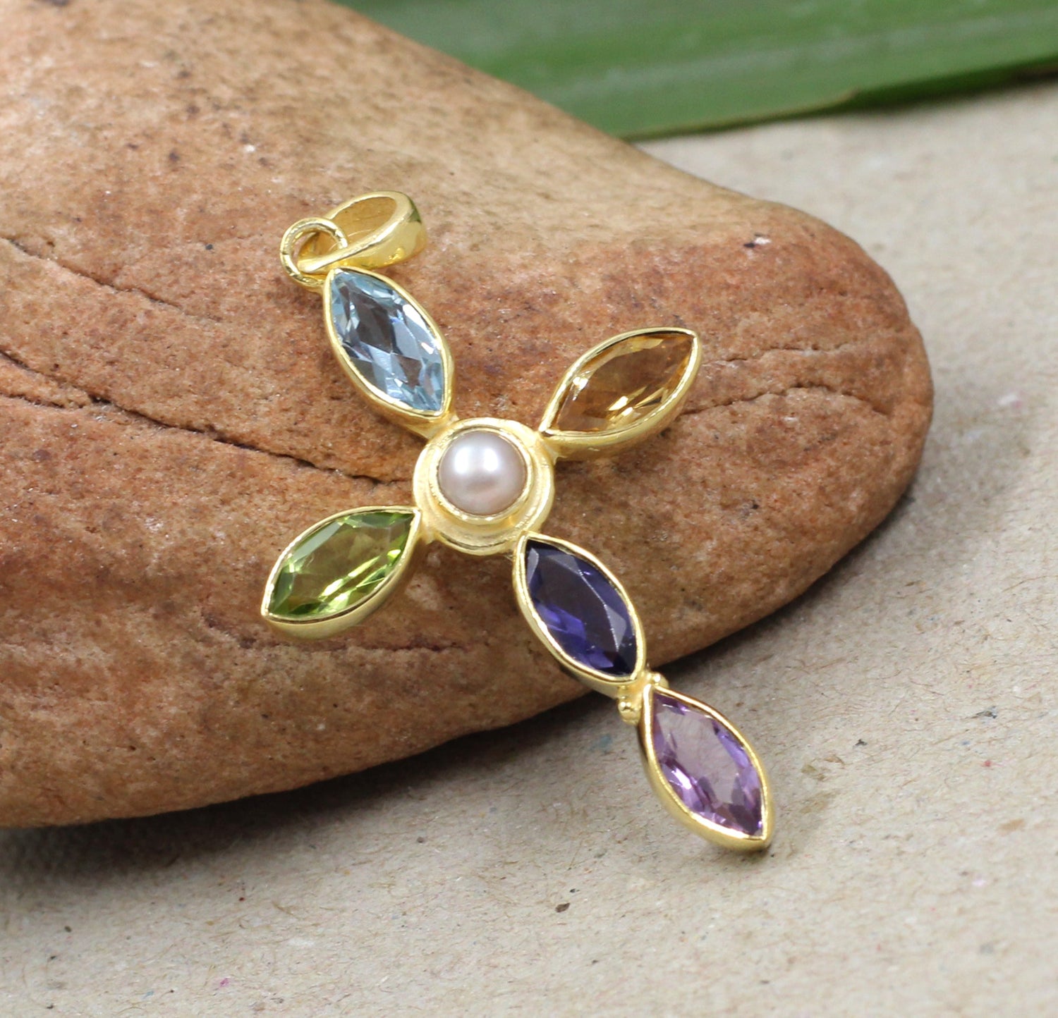 925 Sterling Silver Gold Plated Jewelry,Genuine Gemstones Pendant,Beautiful Holy Cross Pendant,Handmade Jewelry,Christmas Gift,Birthday Gift For Mom