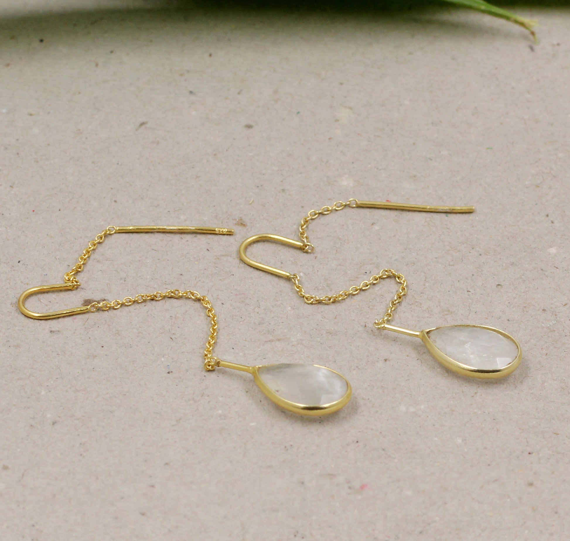 Casual wear Moonstone Drop Earring,Solid 925 Sterling Silver Jewelry,Earring for Daughter,Adorable gift for Girl friend